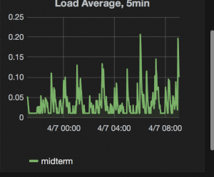 Here we have a constant low level of users arriving on our site, but also an hourly high load and random medium loading. The bar chart below shows the effect this has on our site request times.
